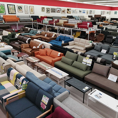 ソファー 210台 ダイニングセット110台 ダイニングボード90台 ベッド90台以上の圧倒的な品ぞろえ!