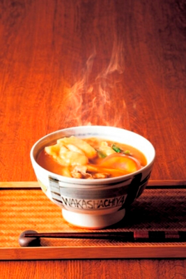 若鯱家にとって味は原点。「安心できる、変わらない味」の継承と「美味しさと新しさを追求した中から生まれる、変わり続けていく味」の研究・開発により、様々なメニューを展開しています。中でも独自の製法で作る「名物カレーうどん」は、ご注文をいただいてから一杯、一杯丹精込めて仕上げる自慢の逸品です。強いコシとモチモチした食感の極太麺が、とろみのある秘伝のピリ辛ルゥと絡み合い、絶妙な味わいをお楽しみいただけます。