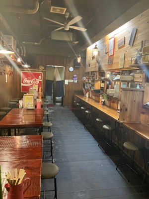 看板メニューの手作りピザを中心に炭水化物多めのくいものやです。 アルコール、ノンアルコール両方充実しています。