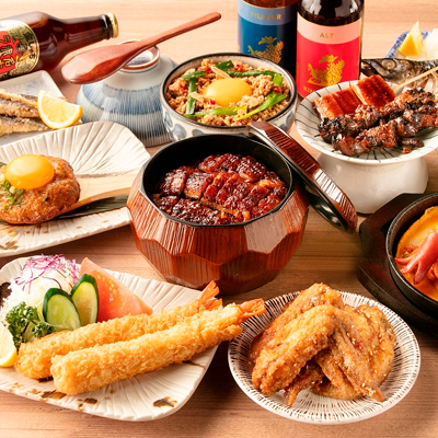 ひつまぶしはもちろんや味噌カツ、手羽先自慢の料理が多数
