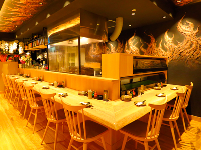 栄の住吉で20年以上続く老舗焼鳥店。地上1Fの大きな扉が目印です。竹を基調とした落ち着いた店内です。臨場感あるカウンター席、簾を使ったテーブル席など多彩なシーンでご利用できます。