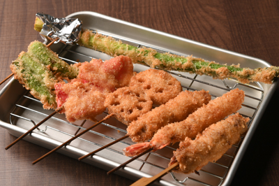 当店のこだわりの串揚げはアンチエイジング、美肌効果のある成分や細胞の健康維持を助けるビタミンEが含まれている米油100%の串揚げ♪衣は薄く軽い仕上がりにしてますので、胃にもたれにくく、女性にも人気に◎お越しの際は【ころも屋】こだわりの串揚げをお召し上がりください。