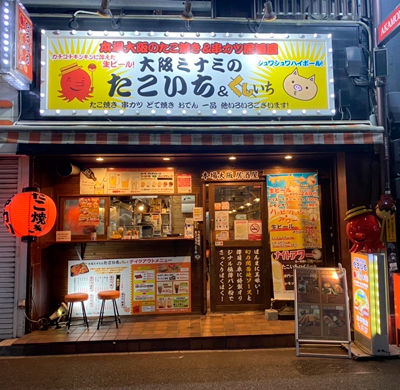 大須の昼飲みと言えば当店です!お昼から営業の「たこ焼き&串カツ大衆居酒屋」です。たこ焼きや串カツのテイクアウトと店内でご飲食いただけます。そして本場大阪ミナミのたこ焼きとキンキンに冷えた生ビールやドリンク各種ございます。店内ではたこ焼き以外にも大阪串カツ、おでん、鶏の唐揚げや他居酒屋メニューも多数取り揃えております。店内は全43席ございます。お気軽にお1人様から、仲間と一緒に団体様までご利用いただけます。昼飲みからお仕事帰りの夜まで是非、ご利用ください。