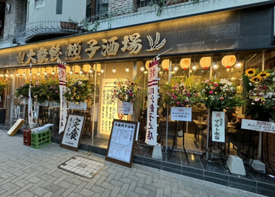 肉汁飛び出るアツアツ餃子と赤みが美しい馬刺しが楽しめる大衆居酒屋です。「街に永く愛される、粋で鯔背な店づくり」をコンセプトに、老若男女が気軽に「餃子とビール」を楽しめます。また、餃子はもちろん、ほぼ全てのメニューのテイクアウトもOK!!冷凍と焼きたてがあるため、自宅でも当店の餃子がお召し上がりいただけます♪